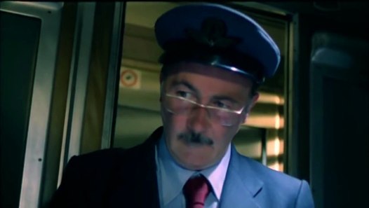 Carmen russo uses her legs to avoid buying a train ticket in the 1981 italian movie buona come il pane.
